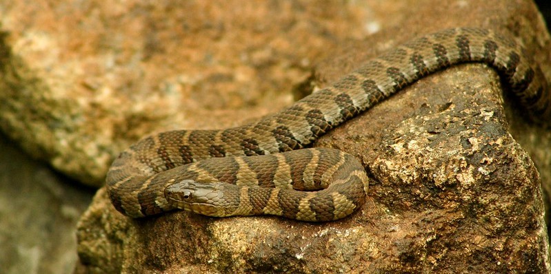 Behavior:   During the day, when not hunting, water snakes spend time basking in the sun.  They are mostly solitary.  These snakes are non-venomous but if disturbed can be quite aggressive and may bite.  It is always best to be respectful by giving them plenty of space to retreat.