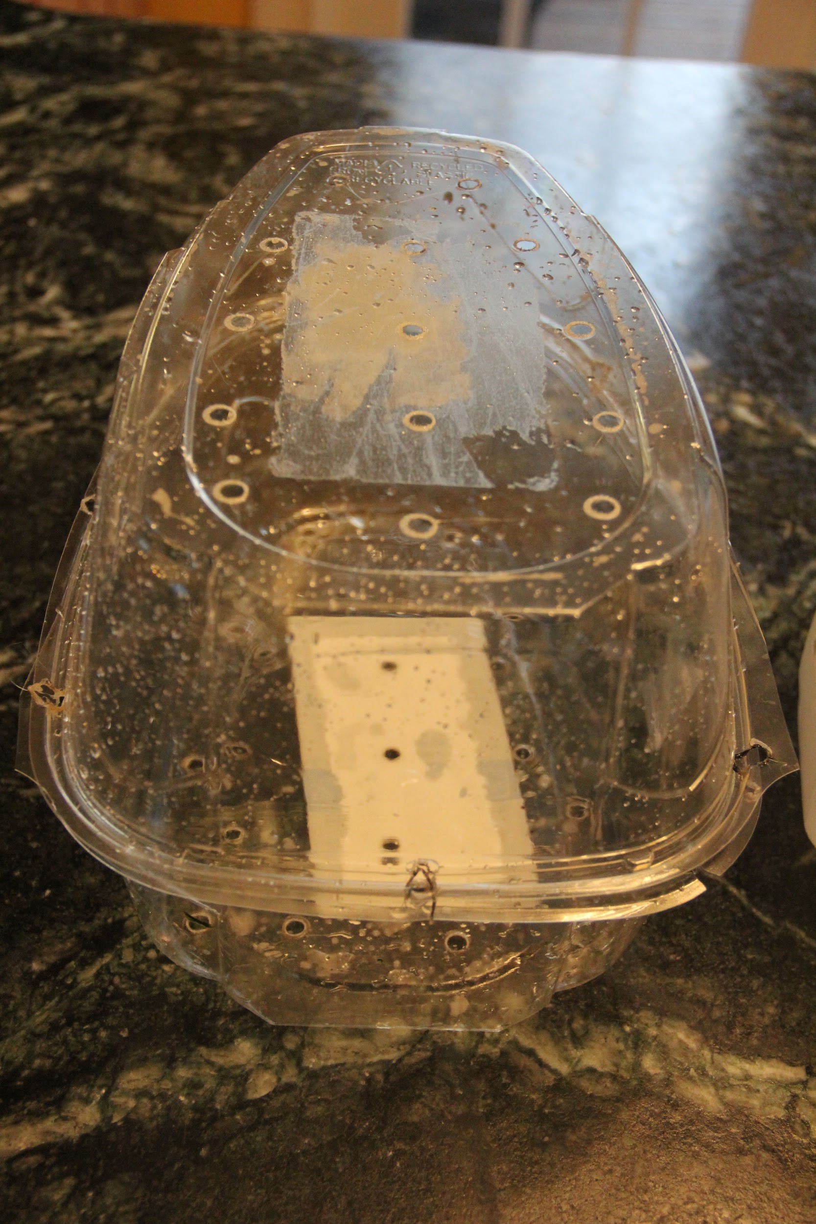 - Periodically check the containers for moisture. A properly vented container will have condensation on the walls of the container on a sunny day with temperatures above 32F. If there is no condensation, check to make sure the container is not dry (place on a tray of water overnight) or there may be too many vent holes (tape up a few and observe the containers on the next sunny day).